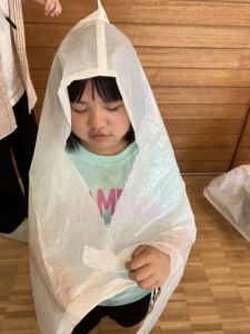 ・ポリ袋を切って加工しレインコート代わりに使う☔