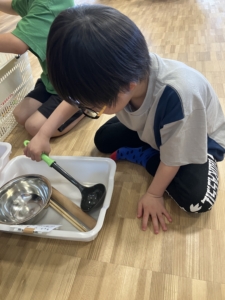 今回は、「道具を分けよう!」という活動で、文房具と調理道具を分ける作業を行いました。