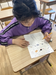 聞き取ったものに該当する絵を探す活動と、文章についての質問に答える活動をしました!