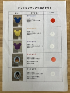 隠されている物(例:セミのカード・ミッキーのカード)を探す活動を行いました。