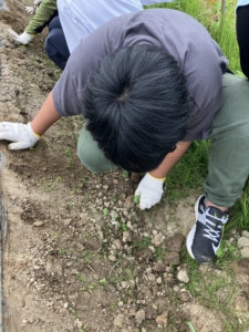 前回苗を植えたので、今回は苗の観察と、草むしりや水やりなどの畑のお手入れをしました。