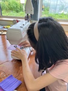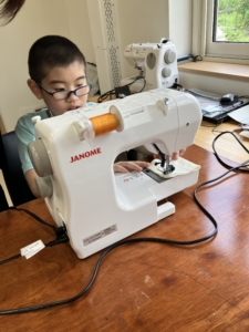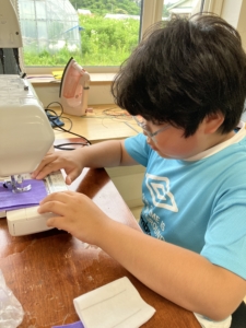 ミシンに興味を持ち、とても意欲的に取り組んでいた子どもたち。