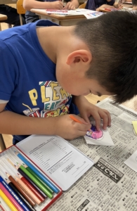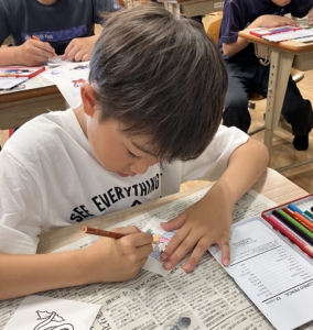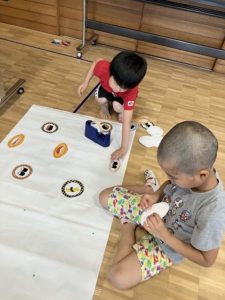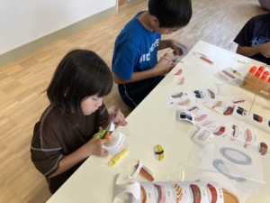 高学年グループは、追加の寿司ネタの飾りをつくるところから、つくった飾りを貼りつけるところまで取り組みました!