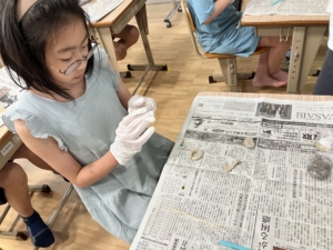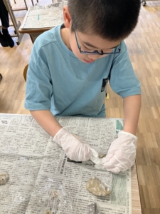 桜の花びらの形に粘土を切り取る作業に苦戦しながらも、最後まで諦めずにつくり素敵な作品に仕上げていました!✨