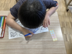 色を塗るときは、お手本を見ながらもともとのキャラクターの色に忠実に塗るお友達もいれば、