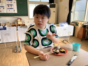 焼きそばをつくったお友達は、みんなから「おいしい!」と言われると、