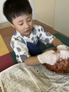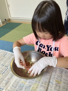 ・ミニミニハンバーグをつくって焼く