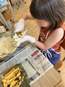 まずは軍艦や巻き寿司のお寿司をみんなで手分けしてつくりました!