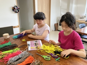 普段地域活動支援センターで作っている、カラフルなパラコードという紐を使って作る
