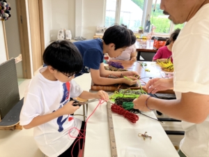 お手本ややり方を見たり、職員に教えてもらいながら、表を通す・裏を通すなど頭を使って作業しました。