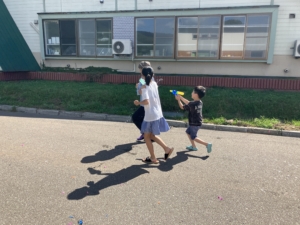 職員やお友達をねらって投げて大はしゃぎ!とても楽しんでいました😆