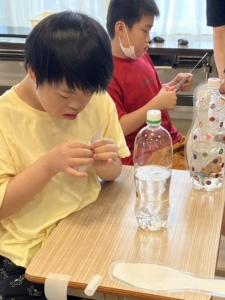 ペットボトルボウリングを製作して、みんなで遊びました!