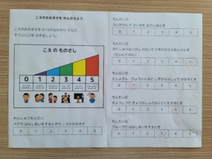 次は声の大きさを0~5の数字にあてはめて視覚化した、「声のものさし」というものを使用しながら、