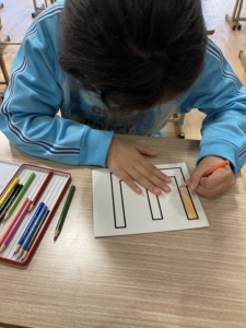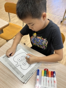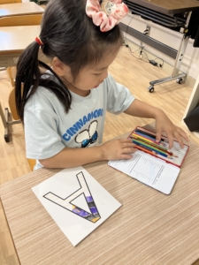 1人1文字、アルファベットの色塗りをしてもらいました!