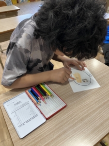 前回から続きの作業で、「好きなもの紹介ポスター作り」と「自己紹介カード作り」を行いました。