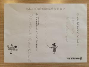次は現実には起こらないこと、「もしも、こんなことがあったらどうする?」について考えました。