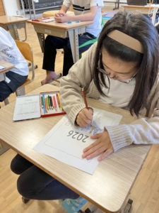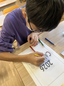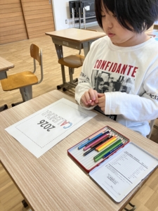 パソコンの台数に限りがあるため、順番を待つ間はカレンダーの表紙の色塗りも行いました。