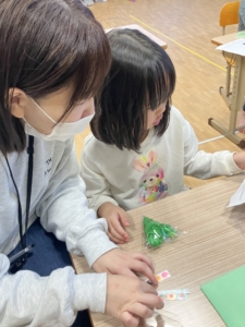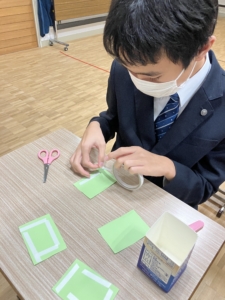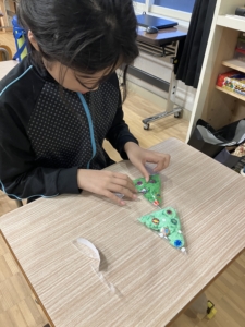 小さいクリスマスツリーを1人2つ作りました。