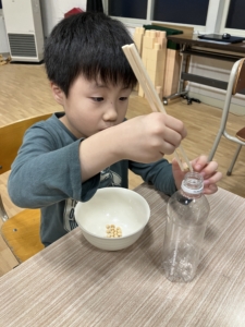 コロコロと動きやすい大豆を箸でつまむ作業は、大人がやっても難しい作業です!💦