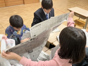③新聞紙やラップを使った寒さ対策を体験しよう(ポンチョ、ひざ掛け)
