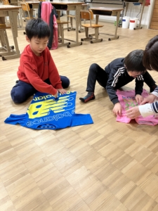しわを手でしっかり伸ばしながら、きれいに畳むことができました👏