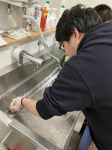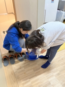担当場所の窓や床の拭き掃除、おもちゃの消毒などをしました。