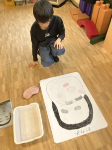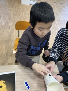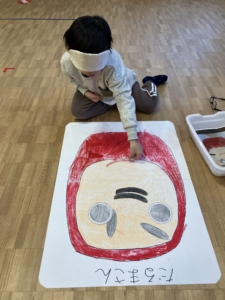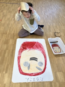 お正月遊びでは、12月の活動で製作した「福笑い」を行いました!