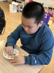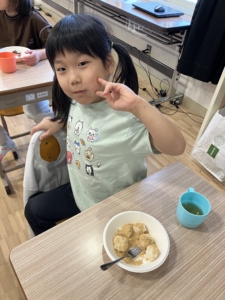 きなこ・みたらし・あんこのおもちを、おやつの時間においしくいただきました。