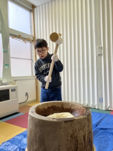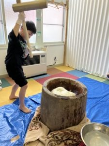 その後は一人ずつ順番に、杵でつく作業を行います!
