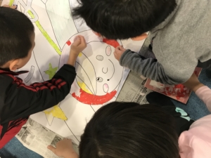だんだんと貼る作業にも慣れてきた様子で黙々と集中して頑張っている子どもたちです(^^♪