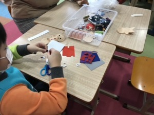 最後のクリスマス飾りは、小学生は雪だるまのリース(それぞれ好きなお顔を書いてもらいました)