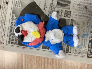 色のついた紙粘土を自由に組み合わせて好きなように作っていきます☺