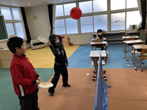 風船バドミントン・・・紙皿ラケットを作り、バドミントン(風船)大会を開催しました🔥