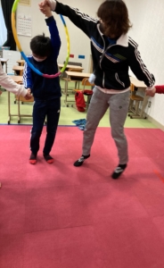 活動のあとは『手つなぎフラフープおくり』というゲームをしました!