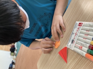 基本的な折り方を確認した後は、グループに分かれて壁に飾る作品を作ってもらいました!