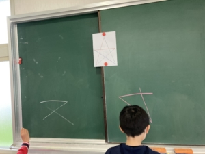 ただし、自分の番に書けるのは1つの線のみ。次の人が描きやすくするためには~??と、