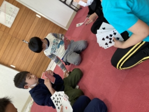 最初から1番大きい数を出す子や、最初はこれくらいかな~と慎重に出す子もいたりして考えながら戦っていました(^O^)/