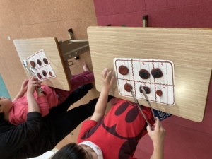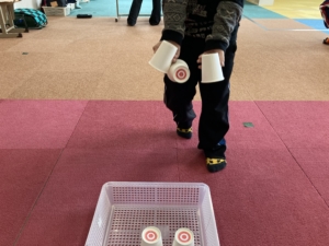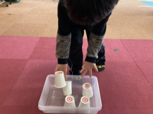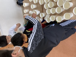 たくさんある紙コップの中から当たりを見つけます!🎯(当たりの紙コップの底には◎の印が付いています。)各チーム当たり6個を見つけれたタイムを競います。