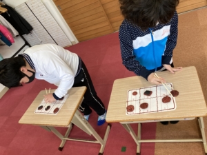 最初に「当たりはどーこだ」というゲームをしました。