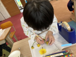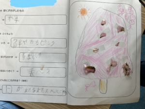 資料を見ながら空欄を埋めていき、シートの最後は採ってきた植物を貼ったりして絵を