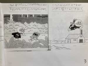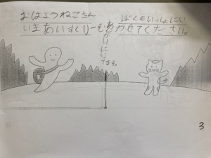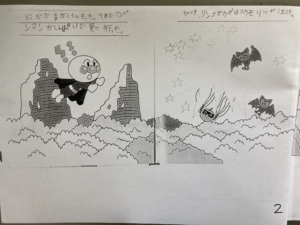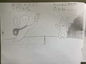 絵だけが描かれているものに自分たちで文章を考えて書き込んでいきます✎