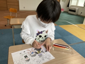 色の付け方をしている子がいたり、大胆に色塗りを楽しんでいる子がいたりと様々でした🎵