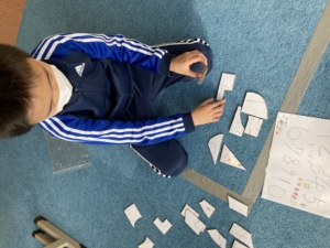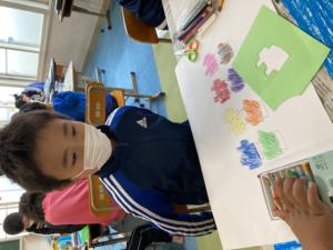 先週よりも難しい形の切り紙に挑戦しました。”丁寧”を意識しながら、細かいところ、尖っているところまで集中して取り組みました。