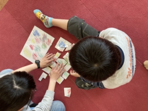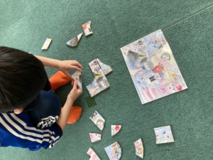 完成したパズルをお友達と交換して遊びました。かわいいイラストのパズル、少し難しいパズルと色々な種類があり、みんな楽しんでパズルを作っていました🧩パズルが得意なお友達はみんなのお助けに回り、大活躍でした💪