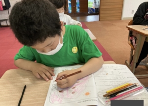 先週の続きの活動で、絵本の絵だけが描かれているものにオリジナルの物語を考えて書いていきます。完成までもう少しです✊完成したお友達は、新しい物語作りに進みました!