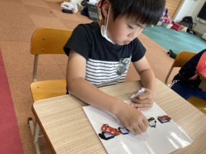 ○車仕分け&シルエット:車のステッカーを色分けしたり、シルエットを見てどの車かはめていきます!