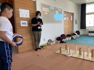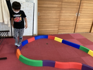 いつもは壁にかけていた輪投げでしたが今回は床に置いてあるバージョンのわなげでした😋