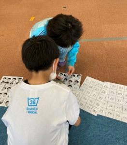 2回目ということもあってか、問題が出されるとすぐにペアのお友達と相談して「僕はこっちの問題覚えるね!」と