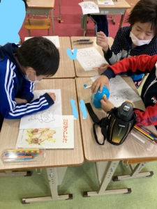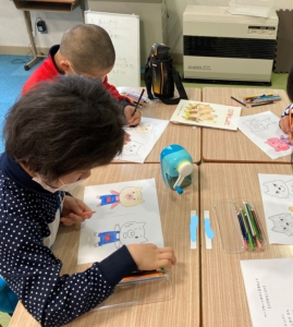 上手な話し合いですぐに決まって、少しだけ登場人物を塗るペープサート作りもしました🐖