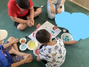 4グループに分かれて活動を進めていき、最後は4グループそれぞれ作ったものを組み合わせると一つの絵になります!🌻